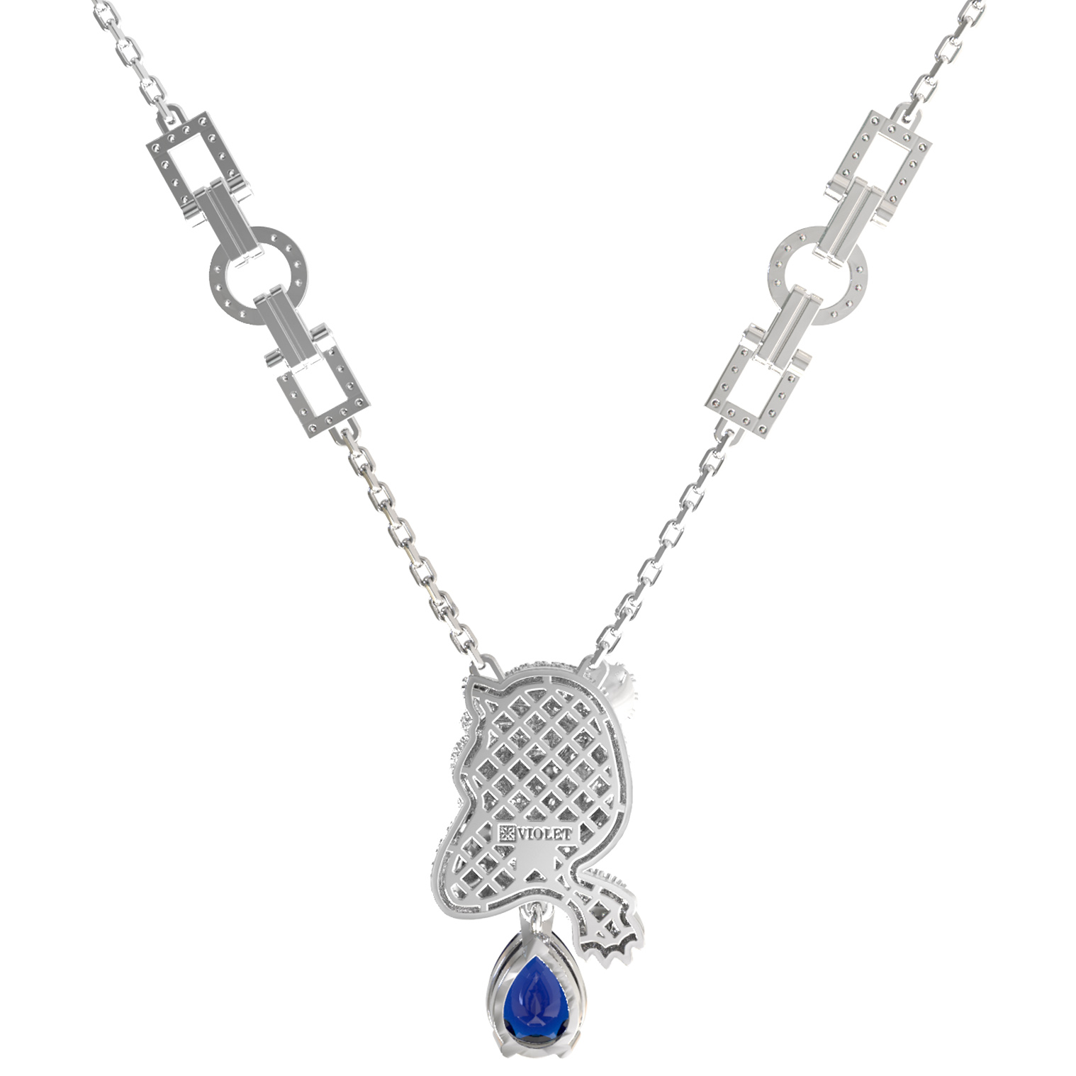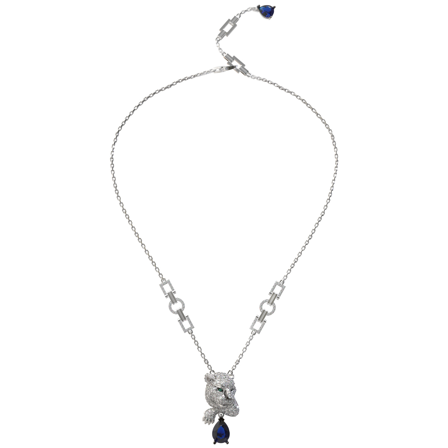 Колье из белого золота c бриллиантами, сапфиром и изумрудом