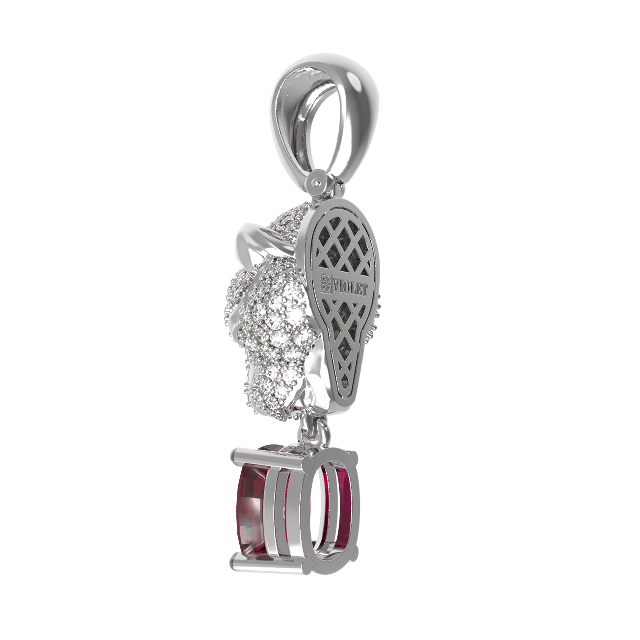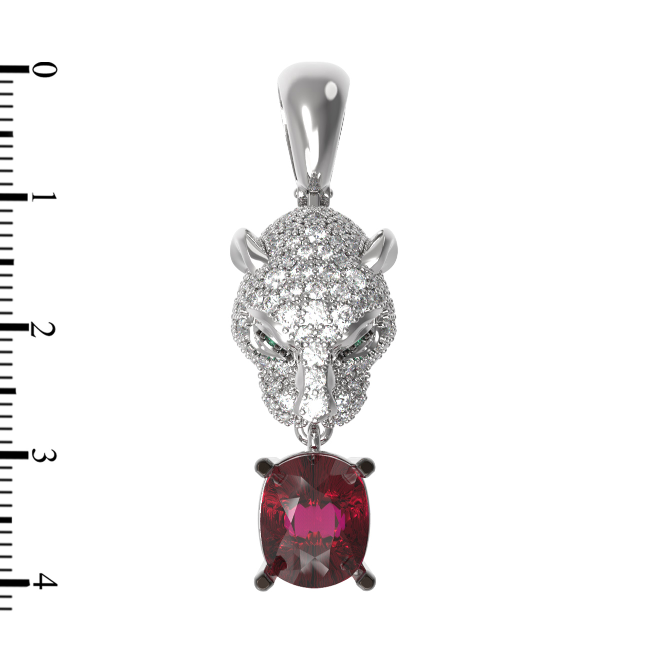 Подвеска из белого золота c бриллиантами, рубином и изумрудом