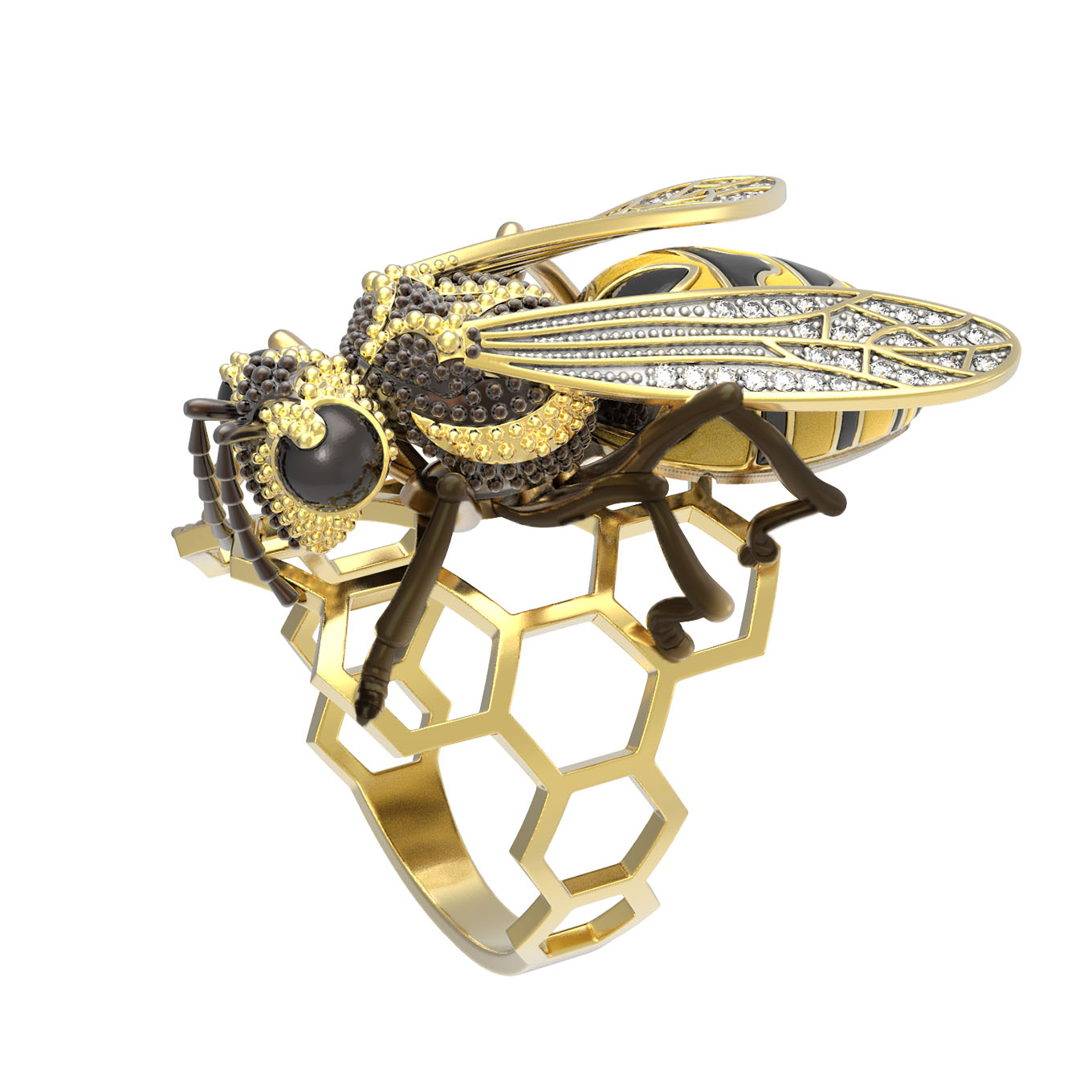 Кольцо из лимонного золота c эмалью и фианитом