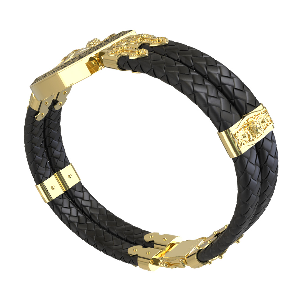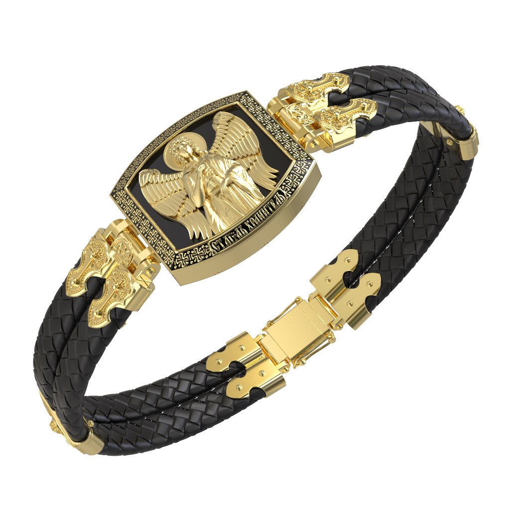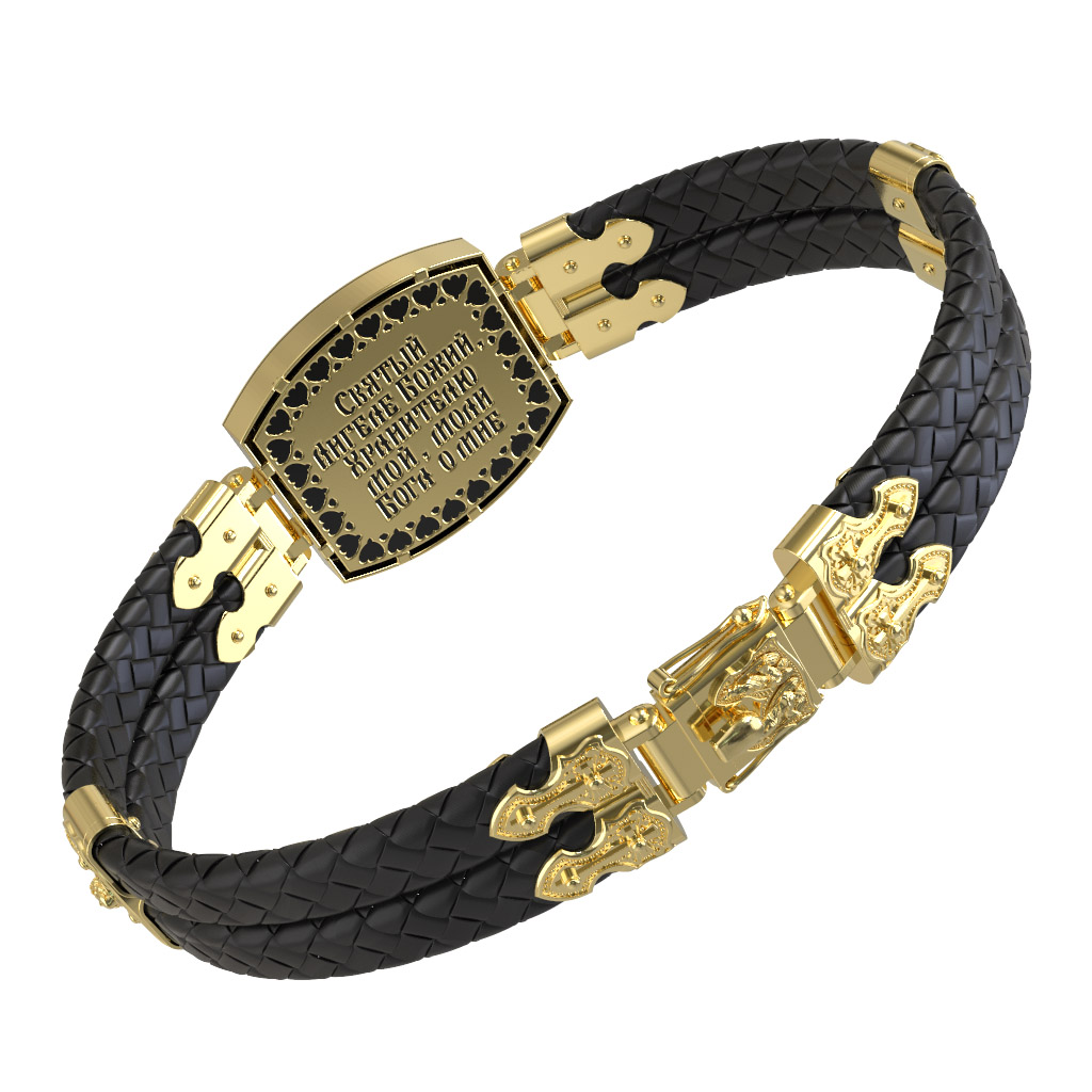 Браслет из лимонного золота c эмалью, шнурком и ониксом