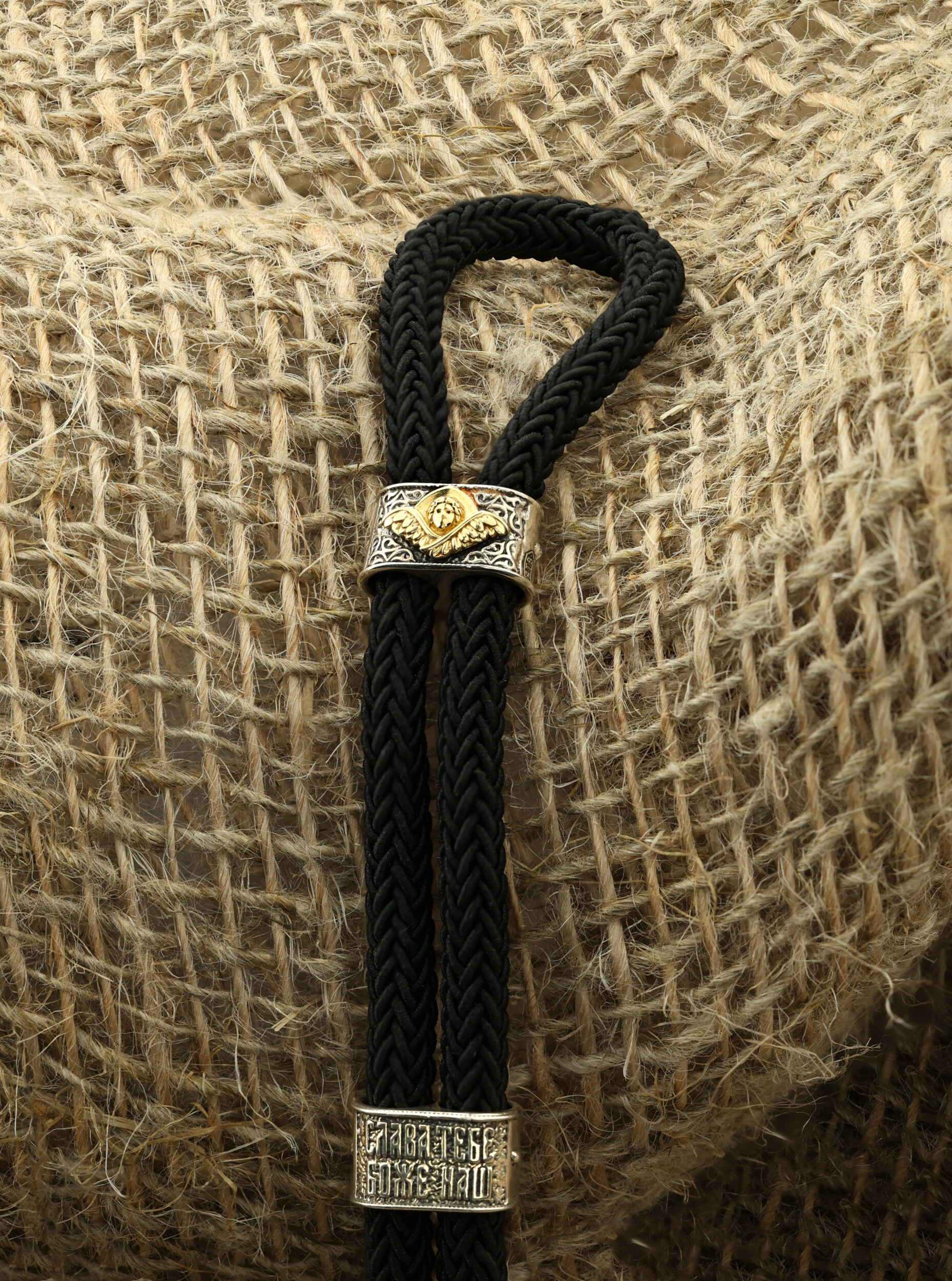 Браслет из серебра и золота c шёлковым шнурком