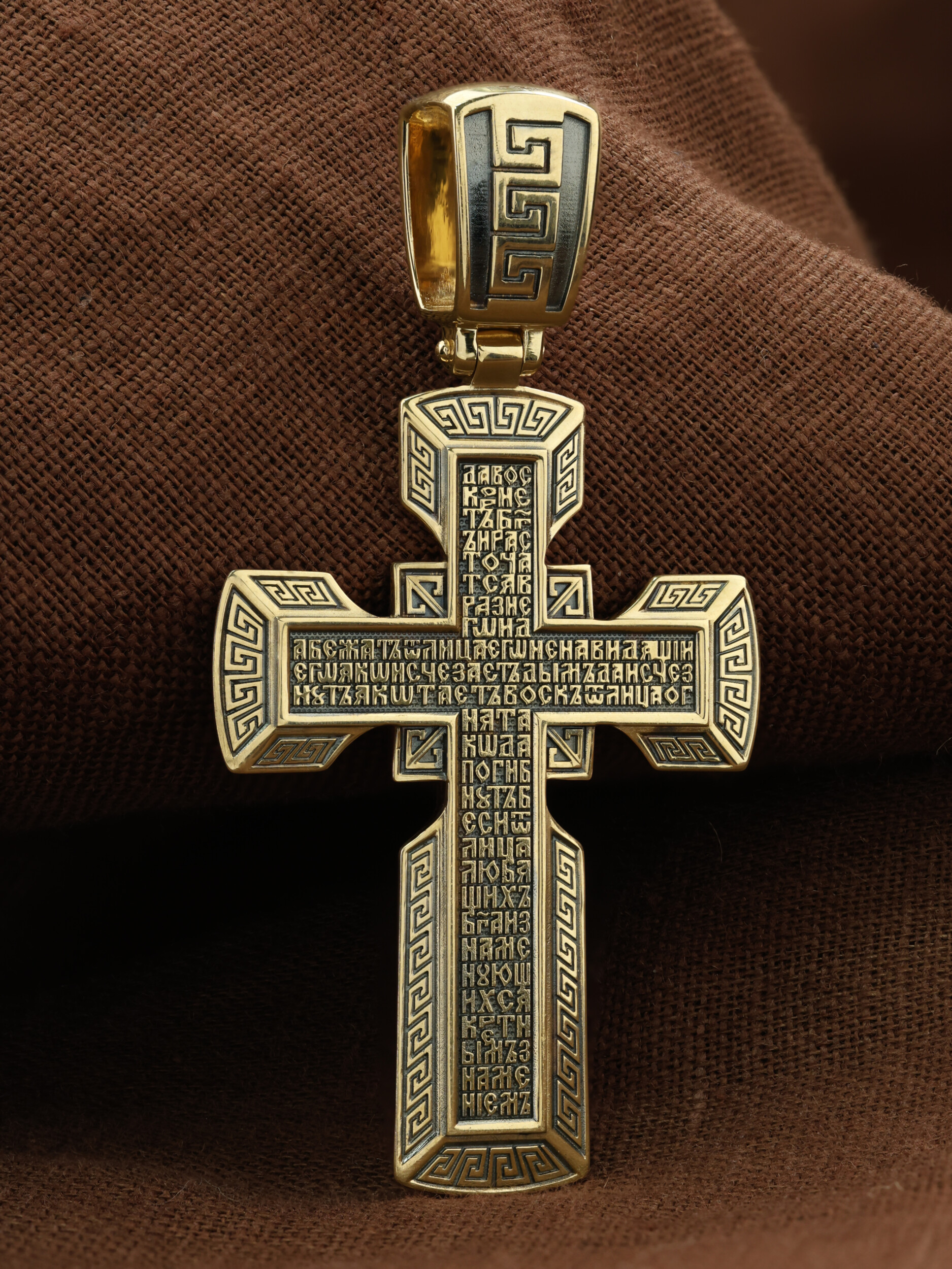 На обороте креста написан начальный стих оградительной молитвы Честному Кресту Господню. Эту молитву читают в опасности, а также носят при себе для защиты от злых сил: «Да воскреснет Бог, и расточатся врази Его, и да бежат от лица Его ненавидящии Его. Яко исчезает дым, да исчезнут; яко тает воск от лица огня, тако да погибнут беси от лица любящих Бога и знаменующихся крестным знамением, и в веселии глаголющих: радуйся, Пречестный и Животворящий Кресте Господень, прогоняй бесы силою на тебе пропятаго Господа нашего Иисуса Христа, во ад сшедшаго и поправшаго силу диаволю, и даровавшаго нам тебе Крест Свой Честный на прогнание всякаго супостата. О, Пречестный и Животворящий Кресте Господень! Помогай ми со Святою Госпожею Девою Богородицею и со всеми святыми во веки. Аминь».