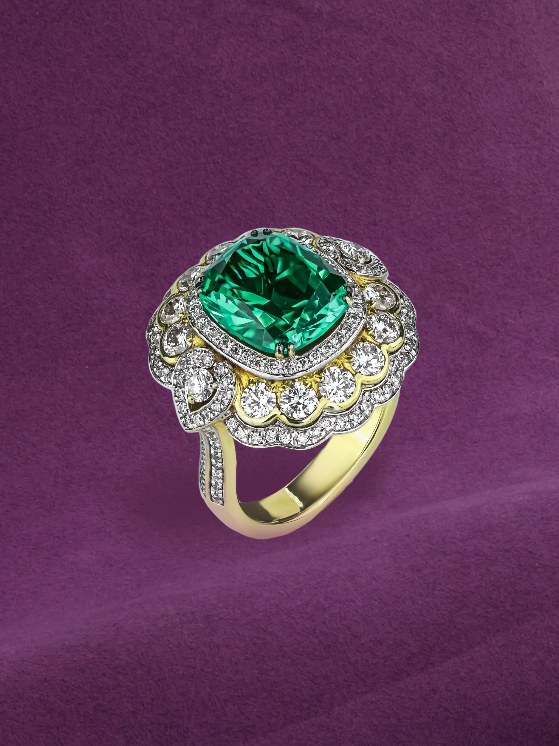 Кольцо из лимонного золота c бриллиантами и изумрудом