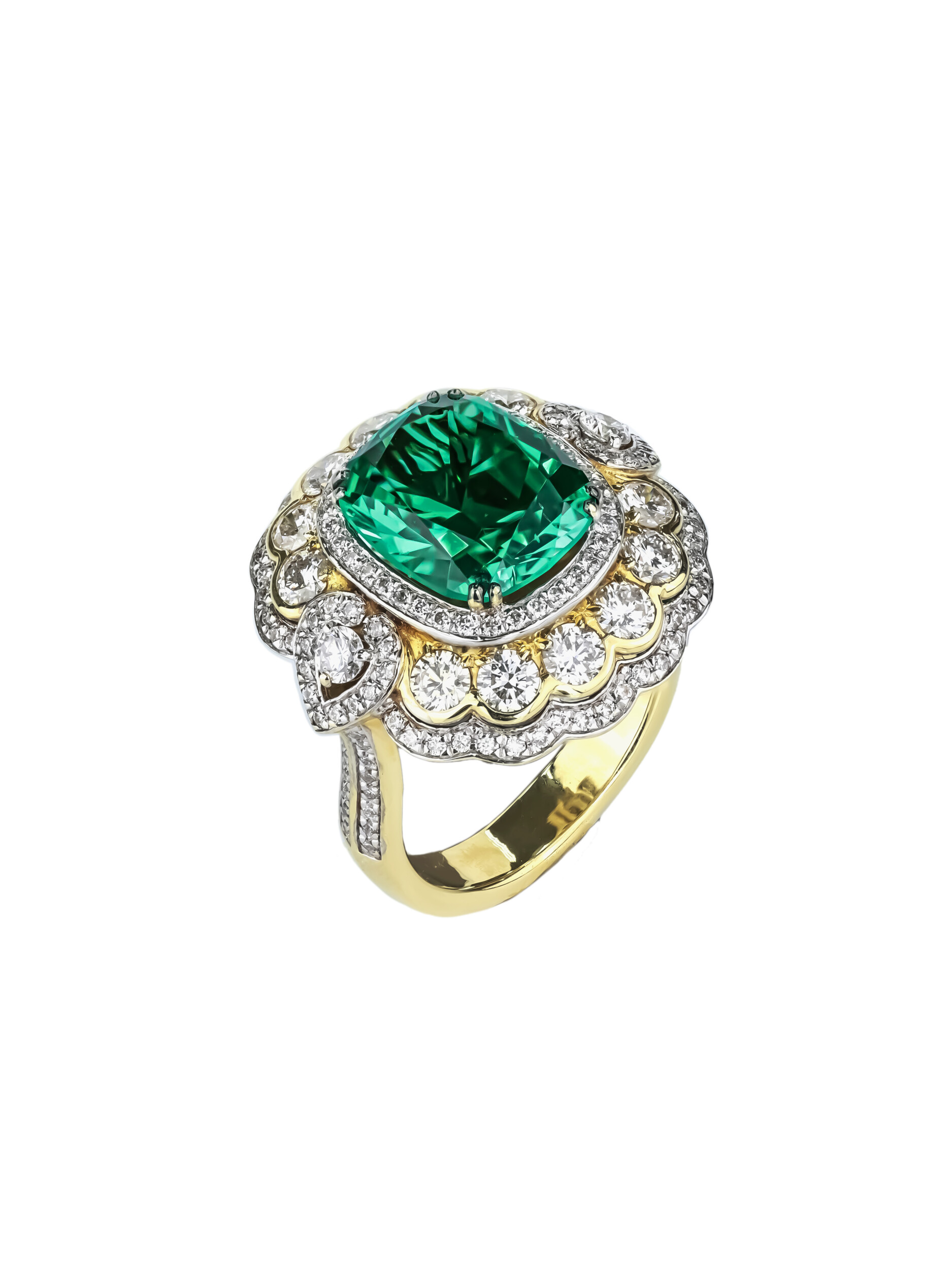 Кольцо из лимонного золота c бриллиантами и изумрудом