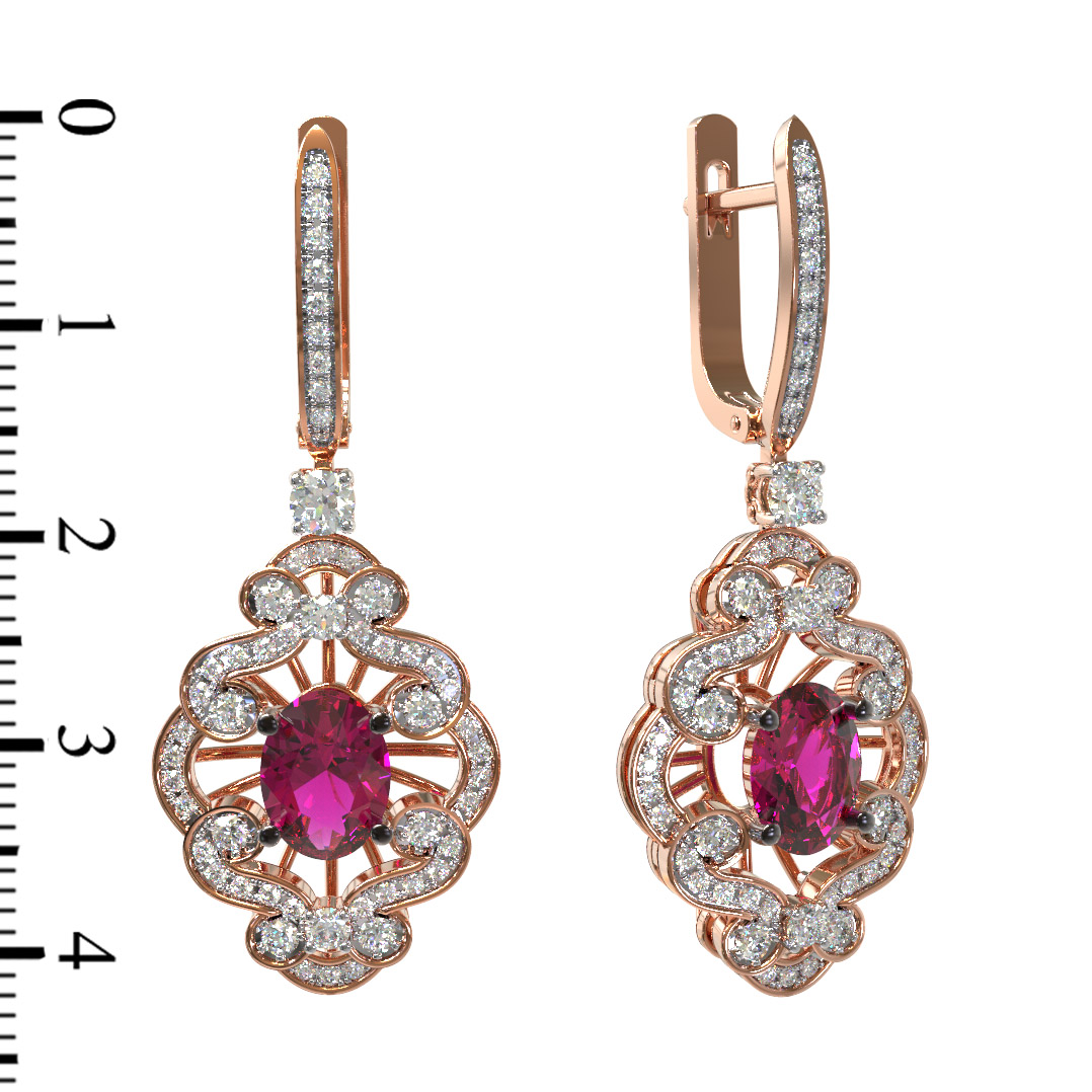 Серьги из золота c бриллиантами и рубином