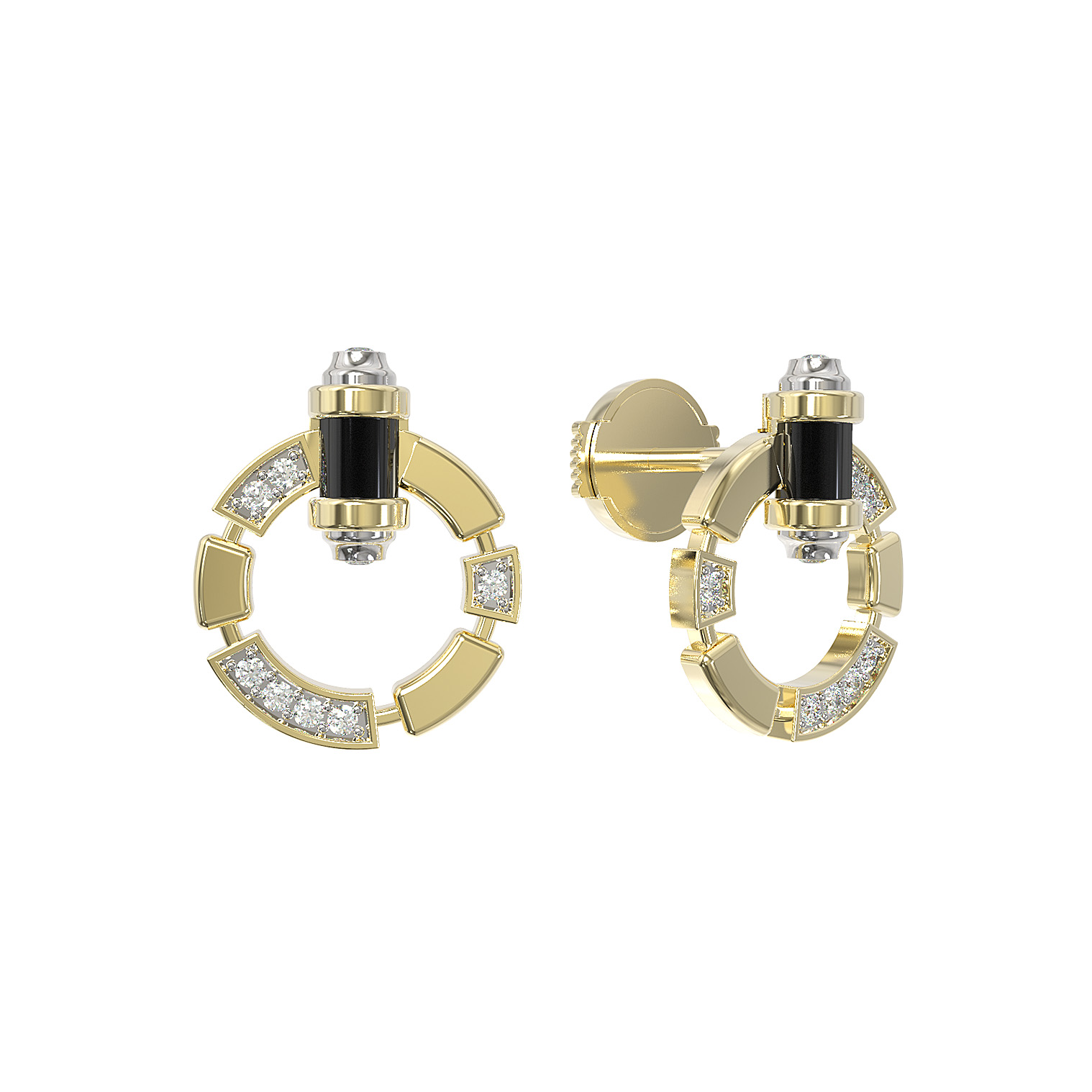 Серьги из лимонного золота c бриллиантами и ониксом