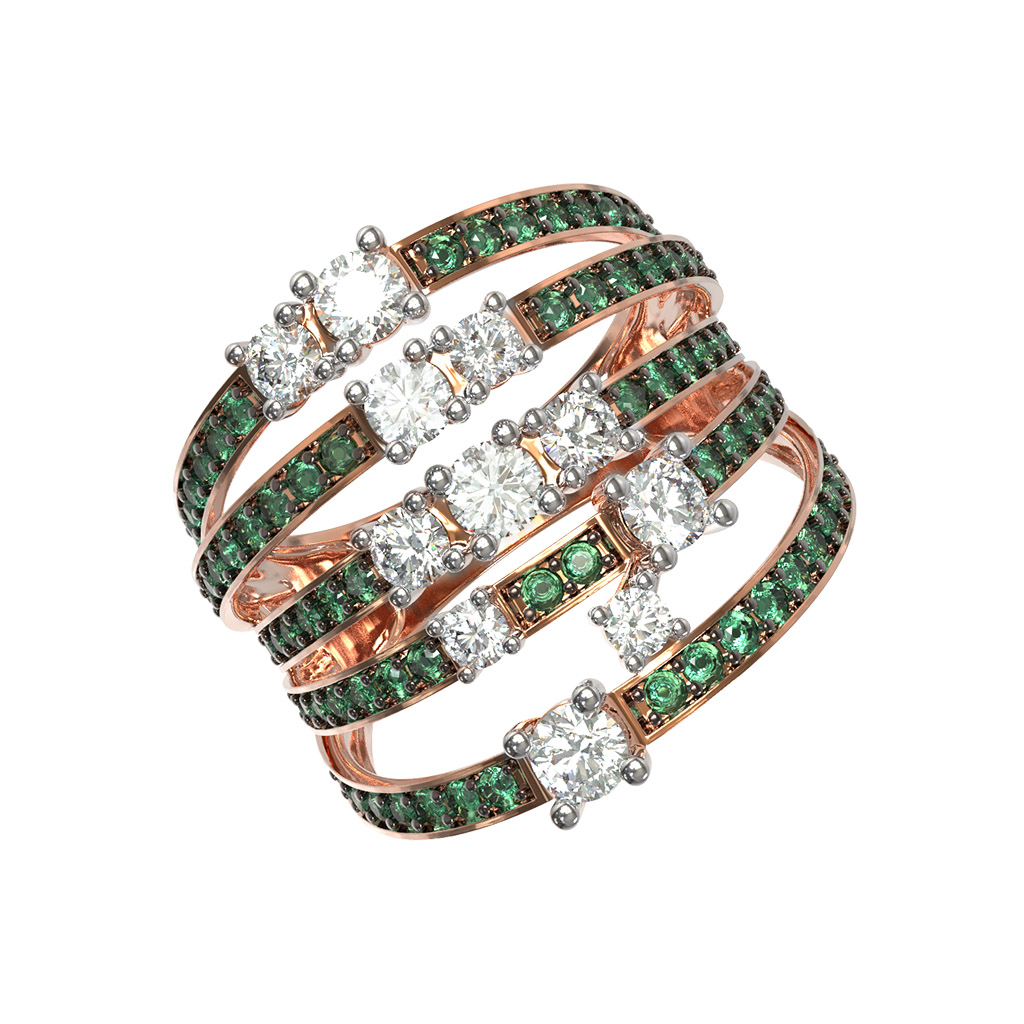 Кольцо из золота c бриллиантами и изумрудом