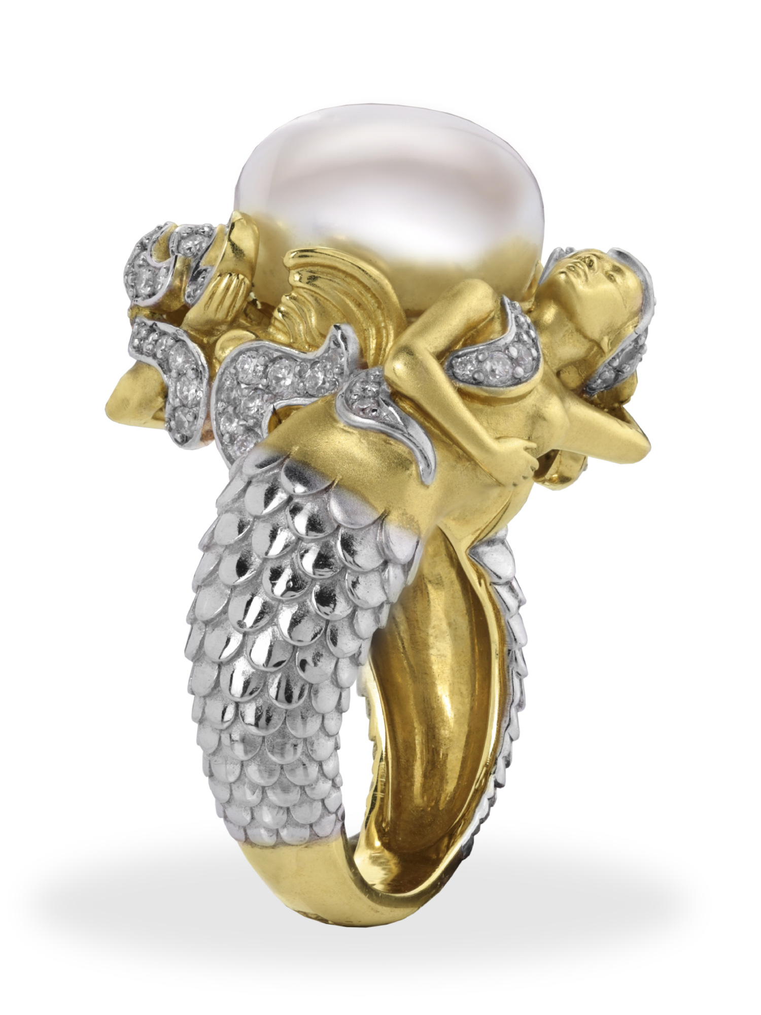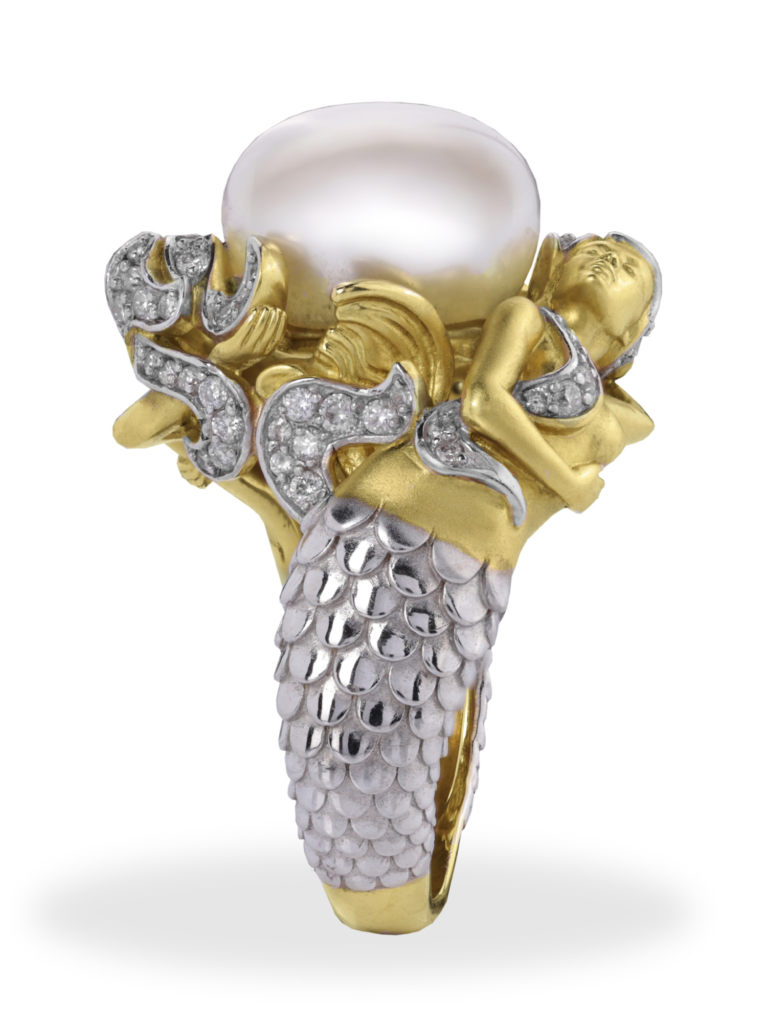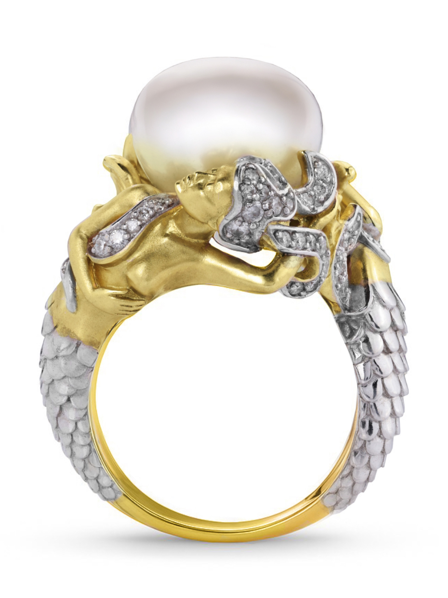 Кольцо из лимонного золота c бриллиантами и жемчугом