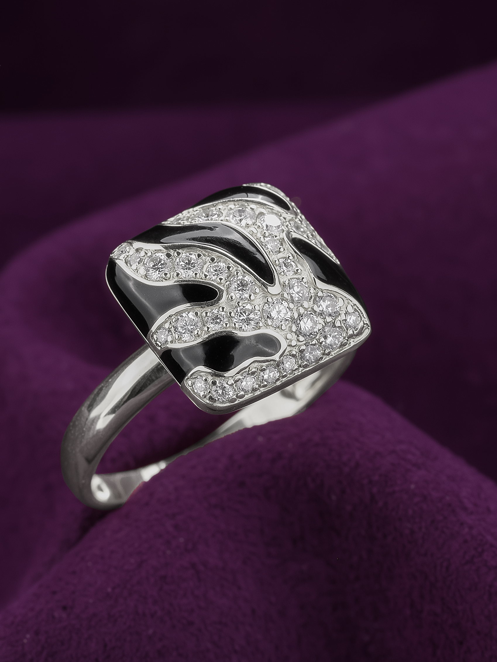 Кольцо из белого золота c эмалью и бриллиантами