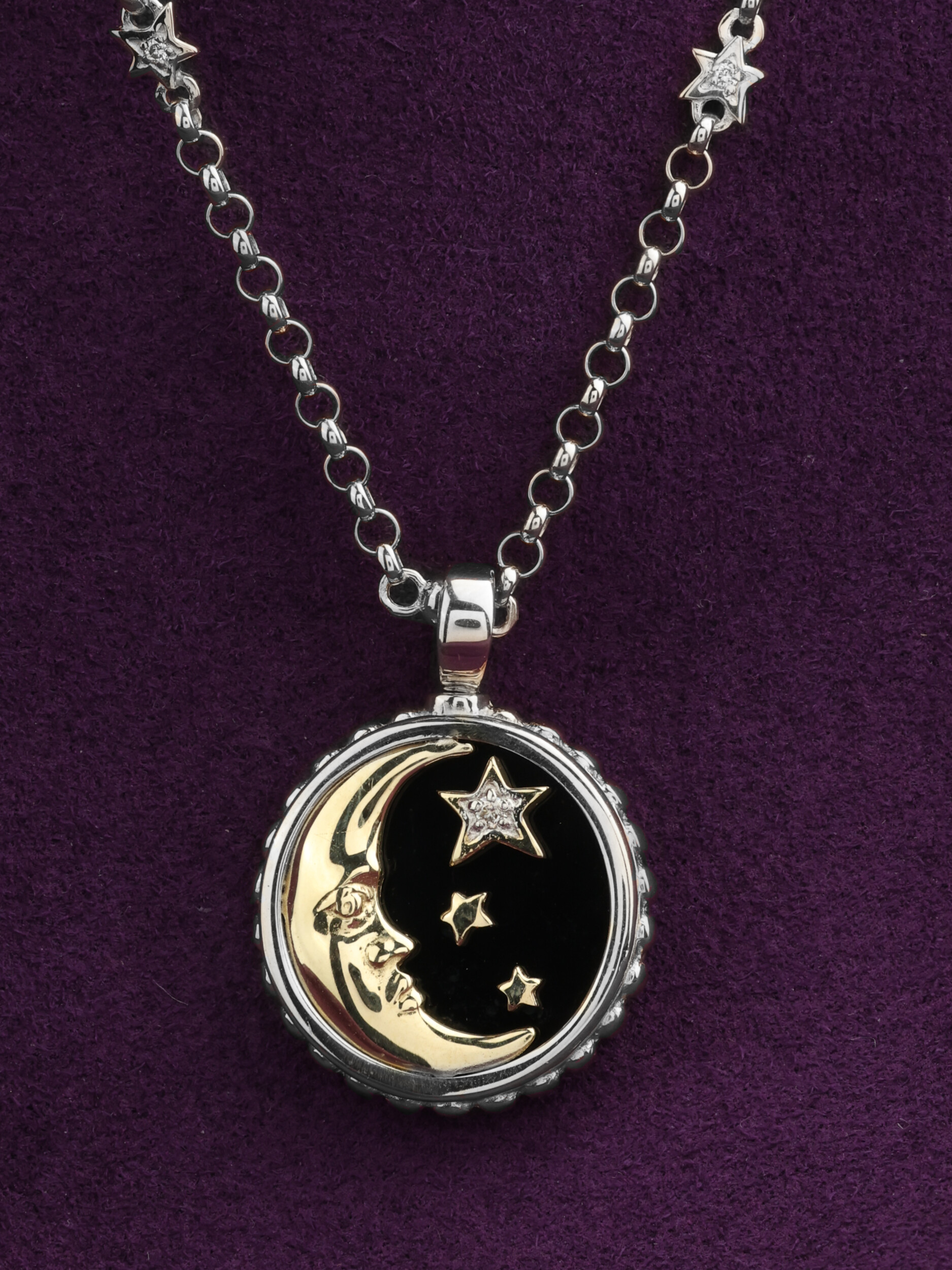 Колье из белого золота c бриллиантами, ониксом и перламутром
