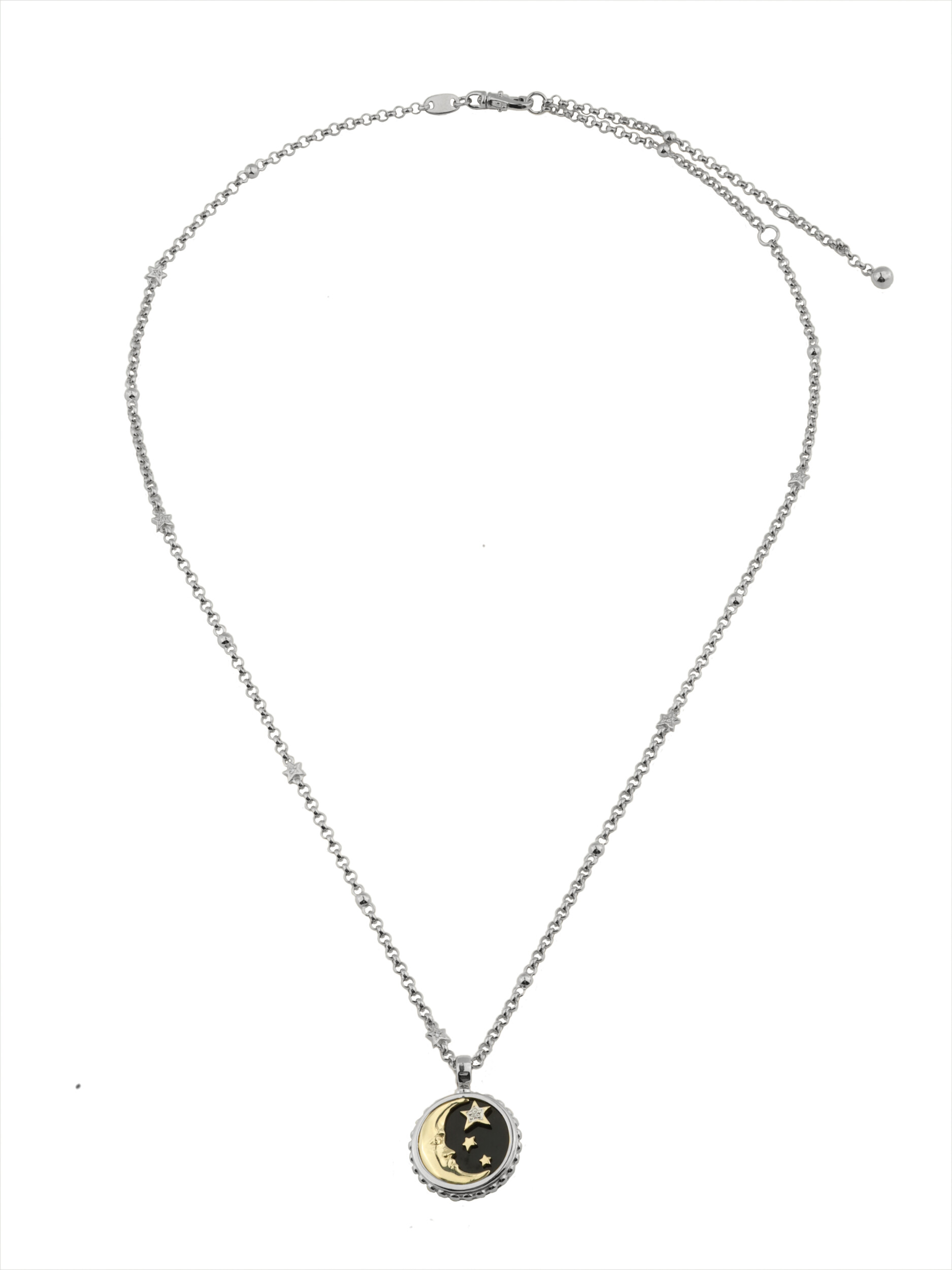 Колье из белого золота c бриллиантами, ониксом и перламутром