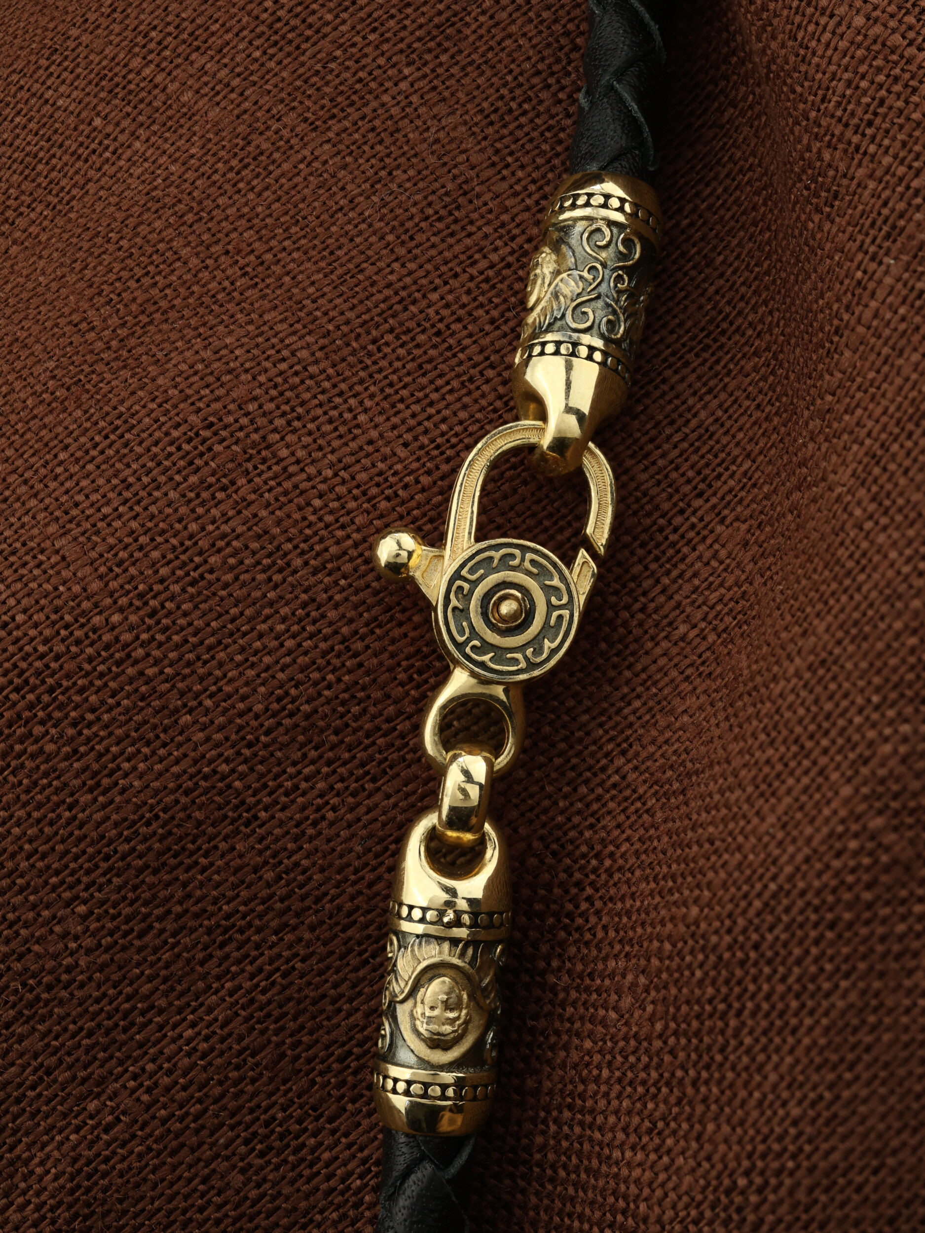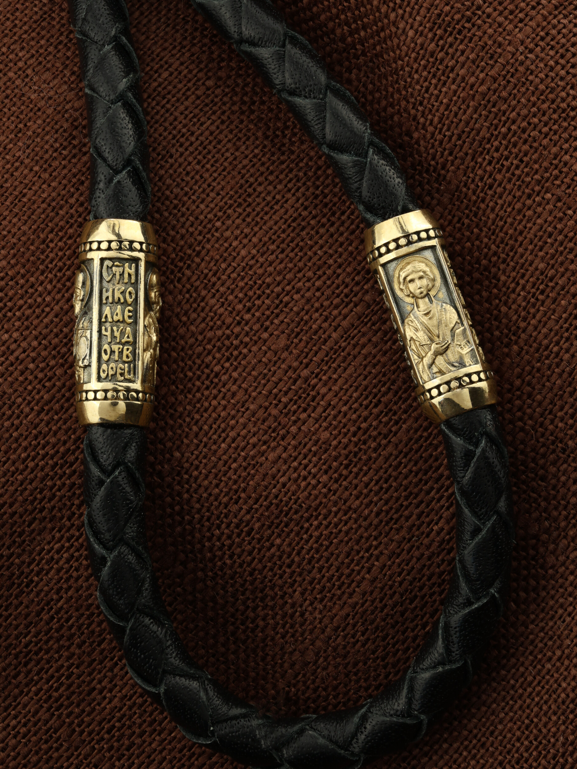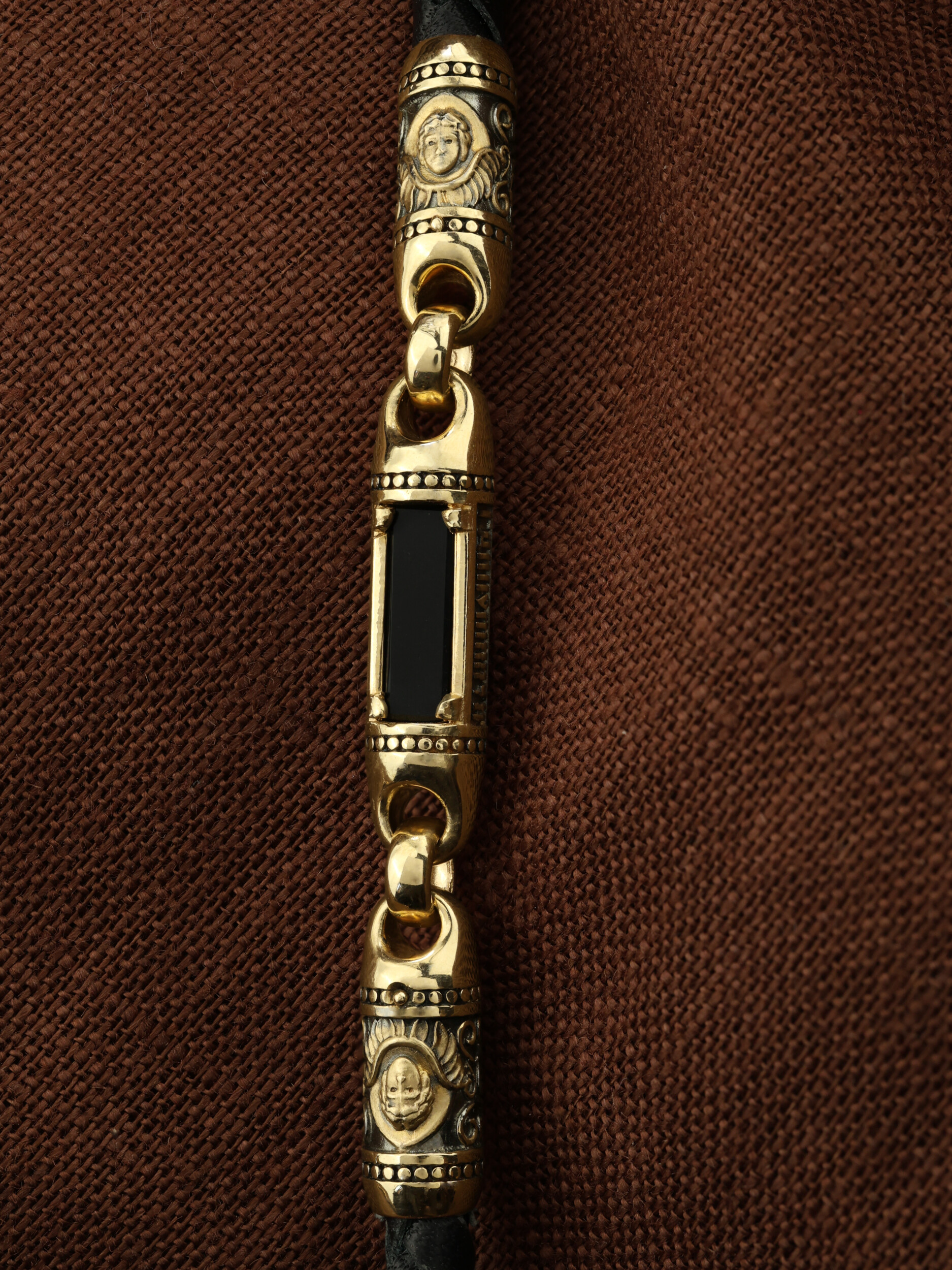 Шнурок кожаный из лимонного золота c кожаным шнурком и ониксом
